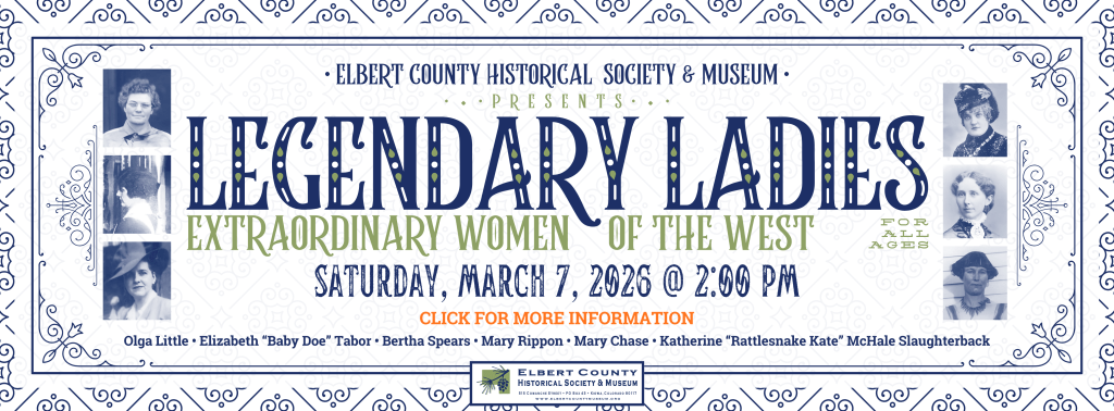 Elbert County Historical Society515 Comanche Street (Highway 86)PO Box 43Kiowa, Colorado 80117 The museum is CLOSED for the season. REOPENING Sunday, May 24, 2026! Regular summer hours (Memorial Day Sunday through Labor Day Sunday) 1:00 to 4:00pm, Thursday to Sunday. Free Admission – Donations Welcomed and Encouraged!